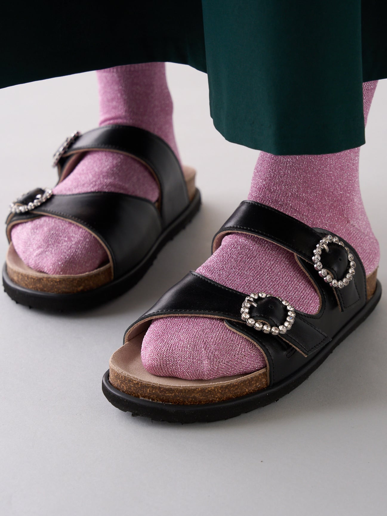 フットベットサンダル ビジューバックル #黒